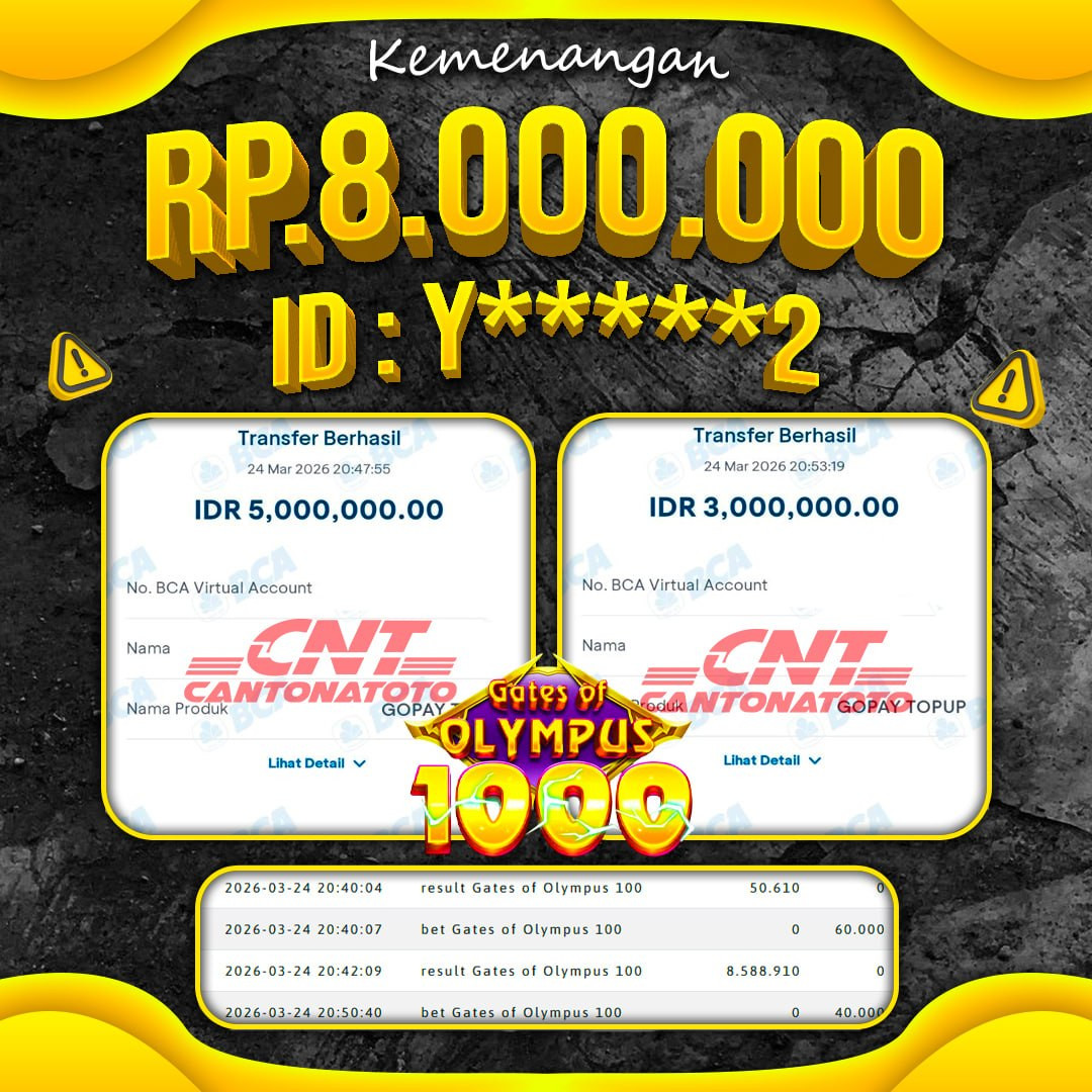 ????✨ SELAMAT UNTUK MEMBER KAMI ATAS KEMENANGAN HARI INI! BUKTI NYATA CUAN BUKAN SEKEDAR CERITA! MAIN TENANG, WD DATANG TANPA HALANGAN! TERIMA KASIH SUDAH PERCAYA BERSAMA KAMI ???? YANG BELUM IKUT, SAATNYA MENYUSUL! ❤️SEL4M4T KEPADA M3MB3R S3TIA CANTONATOTO ????TANGGAL : 24 MARET 2026 ????USER ID : Y*****2 ????B0 : CNTT ????M3N4NG : GATES OF OLYMPUS 1000 ????RP. 8.000.000