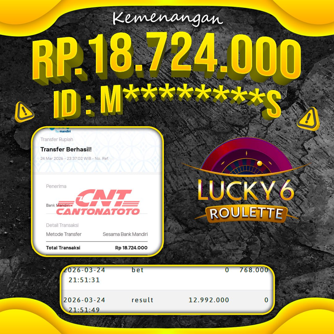 ????✨ SELAMAT UNTUK MEMBER KAMI ATAS KEMENANGAN HARI INI! BUKTI NYATA CUAN BUKAN SEKEDAR CERITA! MAIN TENANG, WD DATANG TANPA HALANGAN! TERIMA KASIH SUDAH PERCAYA BERSAMA KAMI ???? YANG BELUM IKUT, SAATNYA MENYUSUL! ❤️SEL4M4T KEPADA M3MB3R S3TIA CANTONATOTO ????TANGGAL : 25 MARET 2026 ????USER ID : M********S ????B0 : CNTT ????M3N4NG : LUCKY 6 ROULETTE ????RP. 18.724.000 ???????????????????????? : https://rebrand.ly/daftarcantona