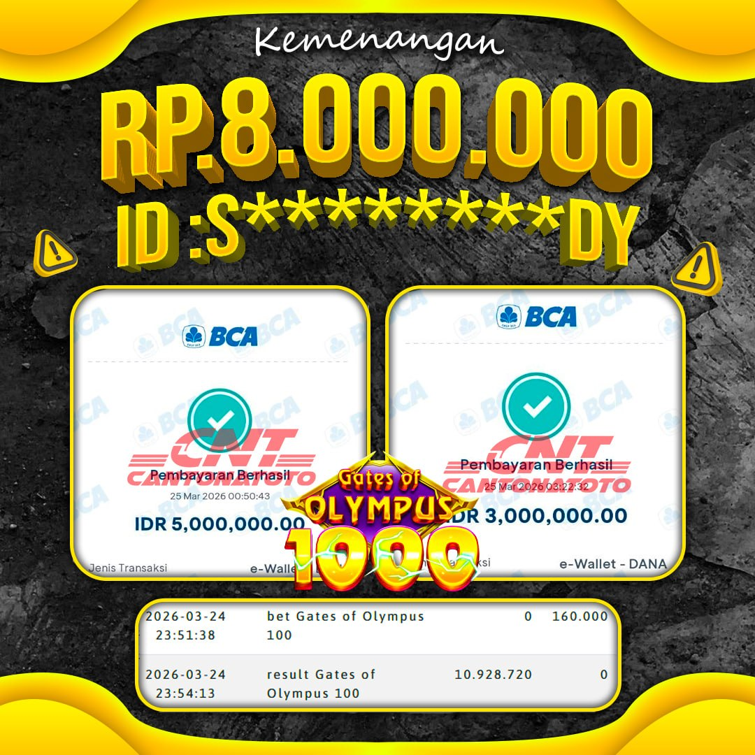 ????✨ SELAMAT UNTUK MEMBER KAMI ATAS KEMENANGAN HARI INI! BUKTI NYATA CUAN BUKAN SEKEDAR CERITA! MAIN TENANG, WD DATANG TANPA HALANGAN! TERIMA KASIH SUDAH PERCAYA BERSAMA KAMI ???? YANG BELUM IKUT, SAATNYA MENYUSUL! ❤️SEL4M4T KEPADA M3MB3R S3TIA CANTONATOTO ????TANGGAL : 25 MARET 2026 ????USER ID : S********DY ????B0 : CNTT ????M3N4NG : GATES OF OLYMPUS 1000 ????RP. 8.000.000 ???????????????????????? : https://rebrand.ly/daftarcantona