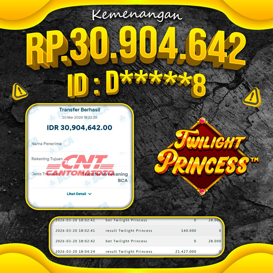 ????✨ SELAMAT UNTUK MEMBER KAMI ATAS KEMENANGAN HARI INI! BUKTI NYATA CUAN BUKAN SEKEDAR CERITA! MAIN TENANG, WD DATANG TANPA HALANGAN! TERIMA KASIH SUDAH PERCAYA BERSAMA KAMI ???? YANG BELUM IKUT, SAATNYA MENYUSUL! ❤️SEL4M4T KEPADA M3MB3R S3TIA CANTONATOTO ????TANGGAL : 20 MARET 2026 ????USER ID : D*****8 ????B0 : CNTT ????M3N4NG : Twilight Princess ????RP. 30.904.642